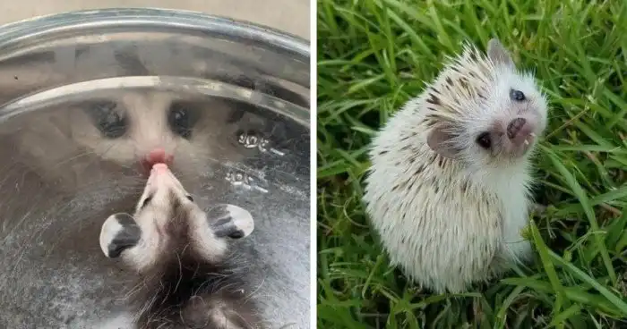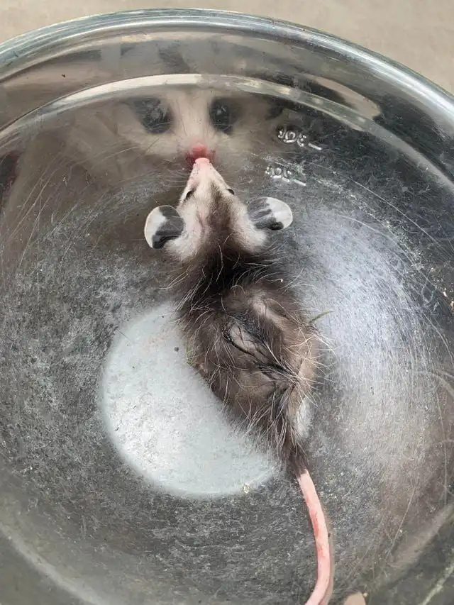 Спас этого малыша-опоссума от собаки. Только посмотрите на его лицо!