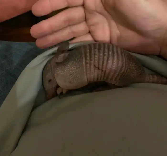 Спас детёныша броненосца и передал его специалисту по дикой природе