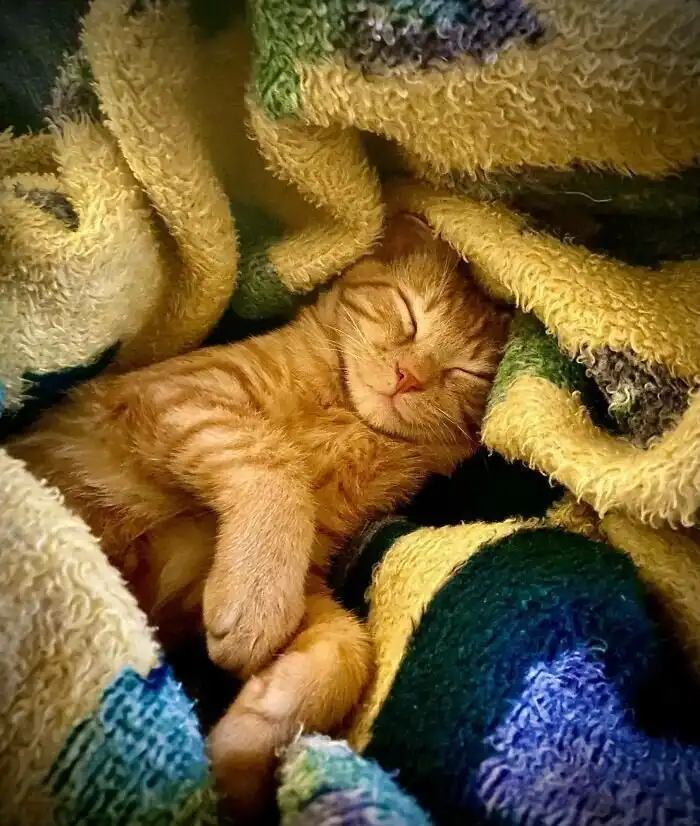 5-месячный слепой котенок нашел свою семью