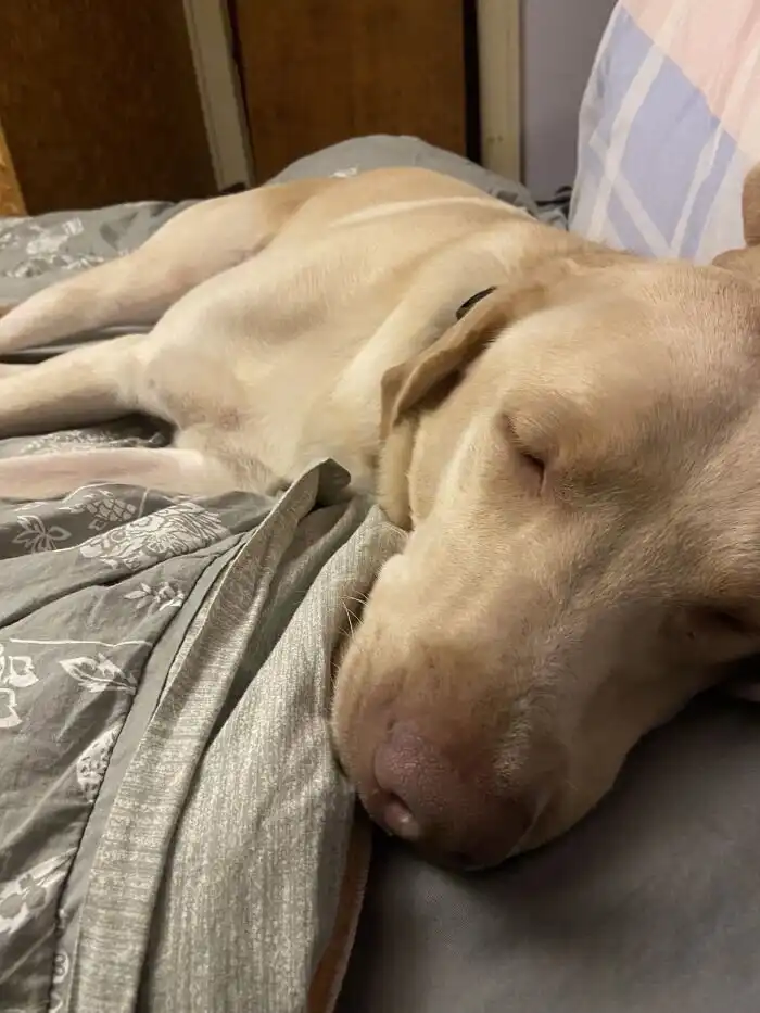 Пёсик, которого подобрали на улице, благодарен спасению