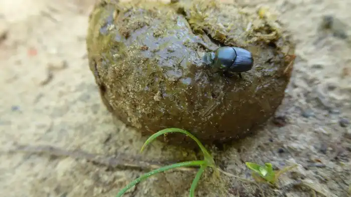 Такая сила нужна жукобыкам по 2 причинам, и первая из них — забота о детях. Все калоеды относятся к жукам-навозникам. Не сложно догадаться, чем именно они питаются. Без экскрементов ни один калоед долго не протянет. Некоторое время он может перебиваться гниющими растениями, частичками кожи и шерстью, но надолго такого рациона не хватит. Причём на каловых массах сидят как взрослые, так и дети. Чтобы личинки не померли от голода, самкам приходится вкалывать по-чёрному.