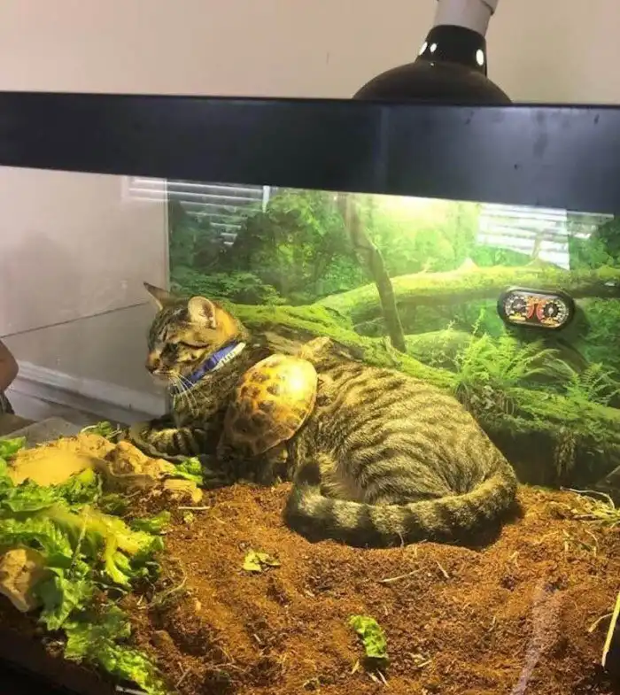 И кое-что о дружбе: кот безумно любит забираться в террариум и отдыхать под лампой в компании со своим другом