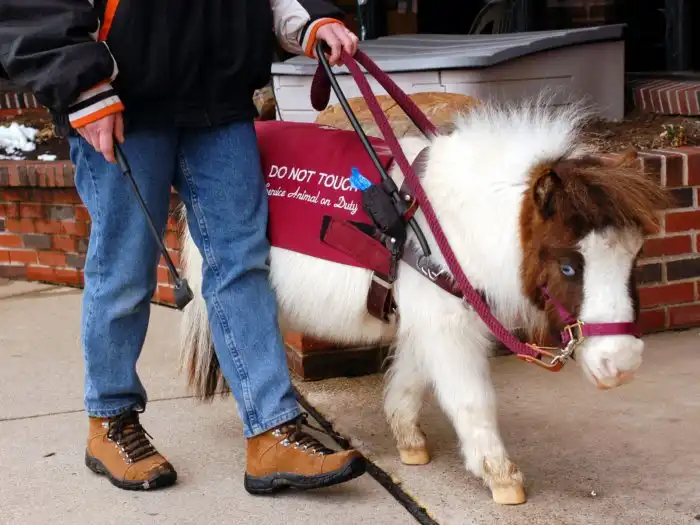 Также фалабелл стали обучать быть проводниками для слепых людей. Тренировки лошади-поводыря занимают больше времени, чем подготовка собаки, но это компенсируется сроком жизни. При должном уходе кони доживают до преклонных 40 лет!