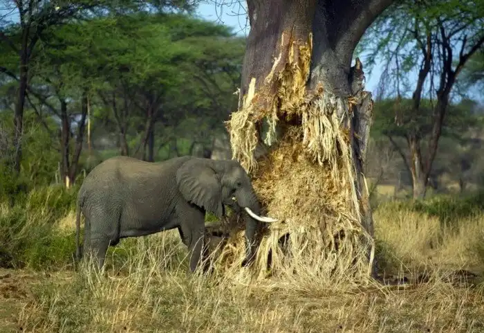 Однако именно бесполезная для человека древесина баобаба привлекает слонов. Что же в ней такого ценного?