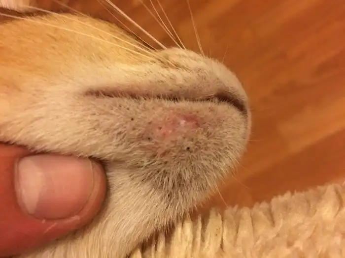 Если вы не знали, как выглядят прыщи у обычной кошки, то они выглядят так.