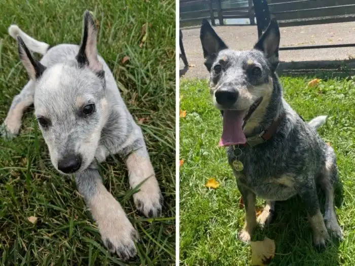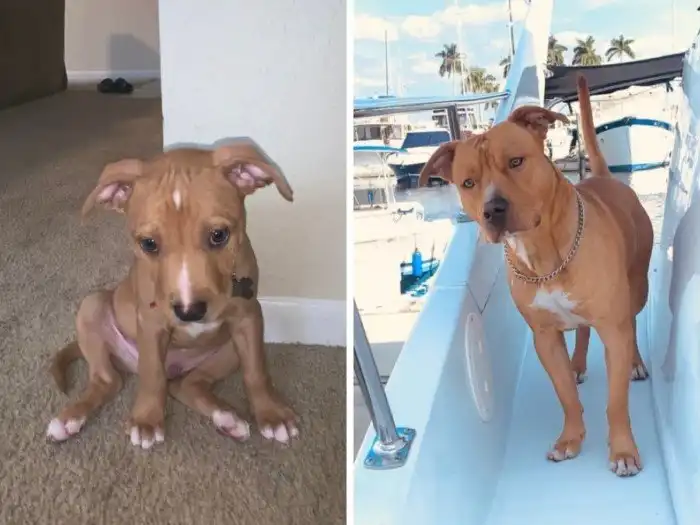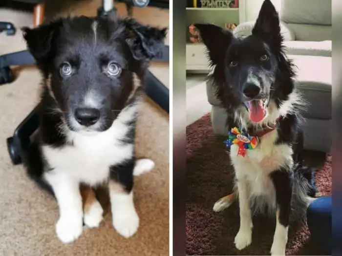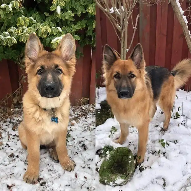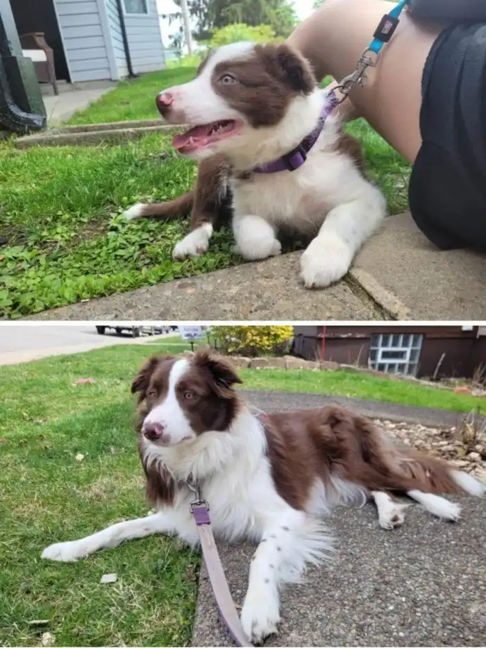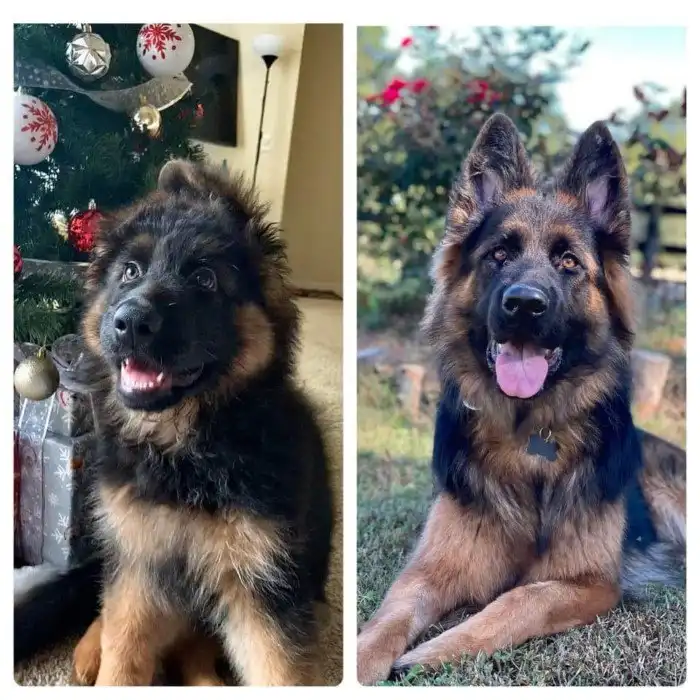 На первом фото собаке всего 2 месяца, а на втором 1 год и 5 месяцев.