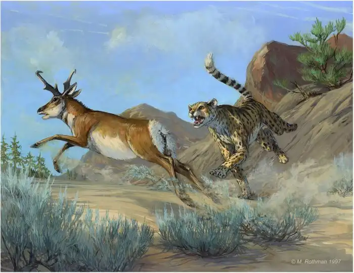 А лапы от ушей давали мирацинониксу возможность сделать более длинный шаг, автоматически увеличивая скорость. В общем-то, поэтому животину и кличут «американским гепардом». Очень уж зверь похож на африканского пятнистого котана.