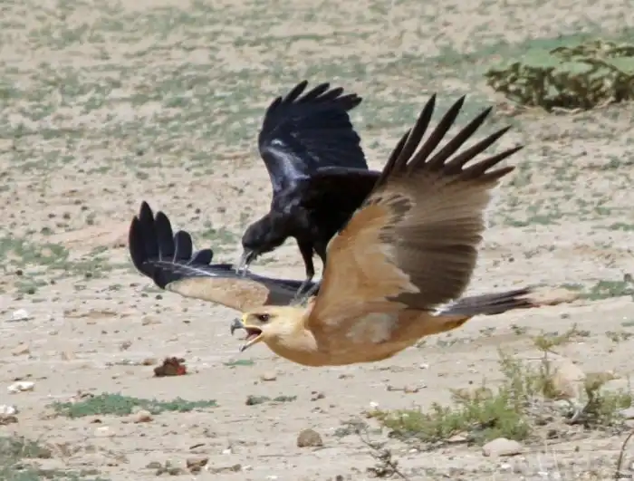 Вот этим вороны и занимаются, приземляясь на спину своим врагам. Они преследуют хищников, седлают их против воли, клюют и рвут перья во время этого родео из шеи, оттуда куда не может дотянуться хищный птах.