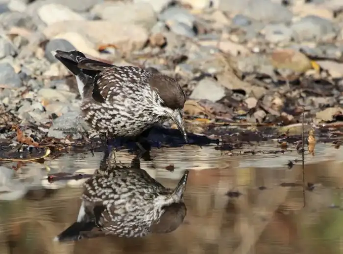 А вот в брачный период птицы сидят тише воды и ниже травы, потому что пары кедровки образуют на всю жизнь. Хорохорятся перед самочками только холостые парни, да и те делают это подальше от чужих глаз. В начале апреля парочки ореховок строят семейное гнёздышко из веток, глины и мха высоко в кроне раскидистого дерева.