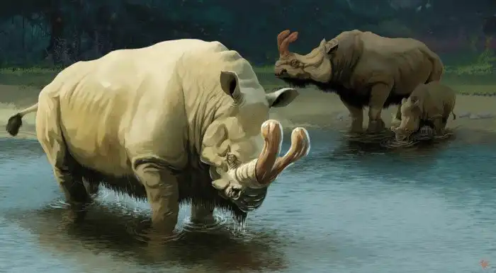 Как и полагается представителям мегафауны, выглядели бронтотерии монументально: до 2,5 метров в холке, до 5 метров в длину, до 4,5 тонн веса. Их визитной карточкой был мощный двойной рог на носу, которым можно было накостылять даже саблезубым кошкам — крупнейшим хищникам своего времени.