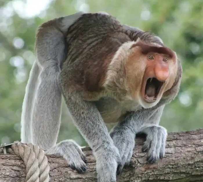 Если не смотреть на морду лица нашего героя, он покажется самым типичным приматом. Живёт в джунглях, скачет по деревьям, ест фрукты. Ничего примечательного. Но не смотреть на физиономию обезьяны невозможно — ведь там красуется гигантский 10 сантиметровый нос! Такая картоха есть только у самцов — у самок нос куда более аккуратный. И этот гигантский шнобель дам жуть как привлекает!