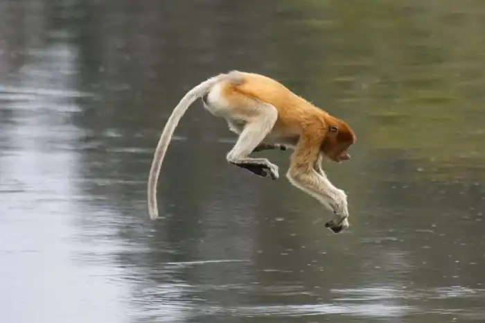 Если с первым всё понятно, то вот относительное прямохождение — вещь уникальная. Никакой другой представитель семейства мартышковых, кроме носача, так не умеет. Да и так хорошо плавать, а тем более проплывать под водой до 12 метров, другие обезьяны неспособны. Для плавания носачи даже перепонками обзавелись! Поэтому наш герой считаются самыми водными среди других приматов.