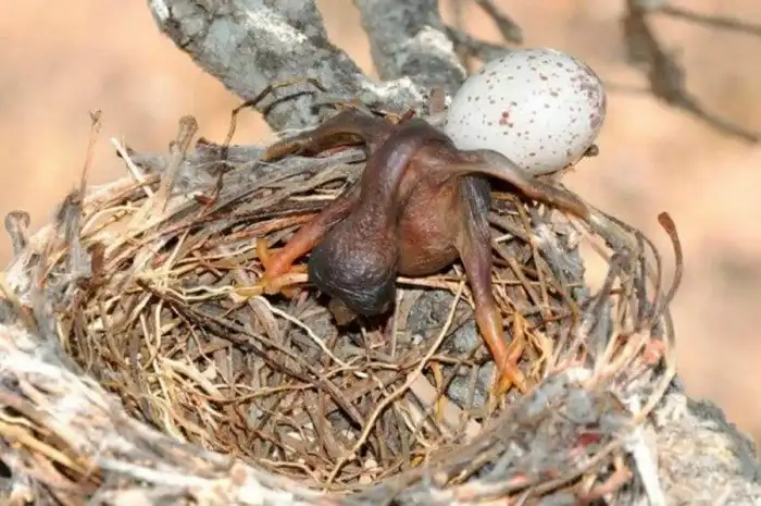 Обычно, нежданное яйцо появляется в кладке на рассвете, когда проснувшиеся родители улетают заморить червячков. Через 15 дней из него вылезает маленькое чудище. Немного освоившись, кукушонок начинает ранить своих братишек и сестричек при помощи острого клювика.