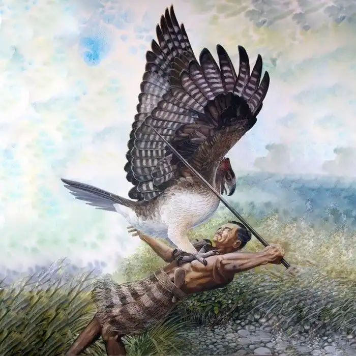 Кстати, относительно недавно – в XV веке – в соседней Новой Зеландии водился орёл Хааста. Это была почти 20-килограммовая птичка с размахом крыльев 3 метра. Судя по сохранившимся легендам, она время от времени охотилась на аборигенов.