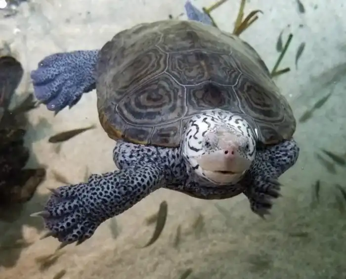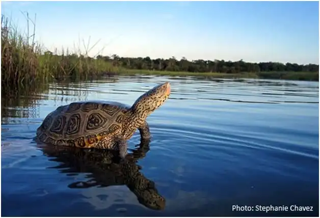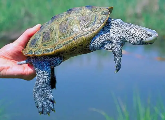 Внешне бугорчатая черепаха не походит на брутальную покорительницу морей. Слишком уж она для этого дела кажется маленькой. Её максимум — 23 сантиметра. И это самки. Самцы чуть ли не в два раза меньше своих пассий. Но несмотря на свою маленькость, наша героиня освоила сразу две водных среды: пресную и солёную. Благодаря тому, что у бронированной рептилии есть право выбора, она стала одной из самых распространённых в Америке.