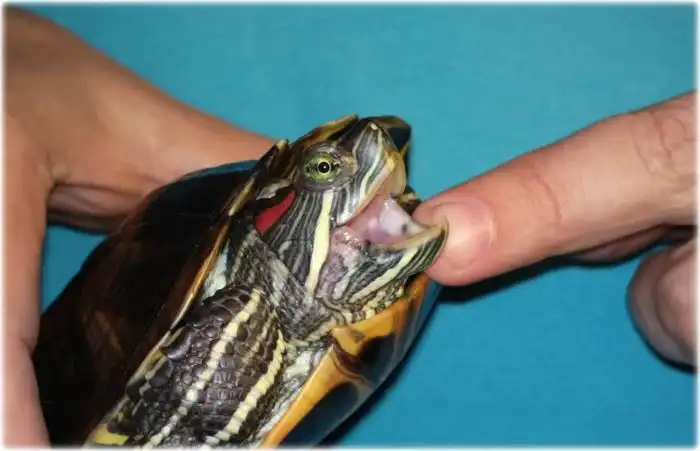 3. Красноухая черепаха — хищница. Это значит сразу три вещи. Во-первых, вам придётся кормить её мясцом. А значит, в воде будет быстро появляться муть и грязь. Во-вторых, из-за диеты какахи тортилл пахнут также плохо, как и человеческие. Если не хотите запаха — менять воду нужно регулярно. В-третьих, красноухая черепашка в дикой среде обитания — гроза пресноводных водоёмов. А это значит, что она может сделать нефиговый укус. Даже до крови. Даже до мяса.