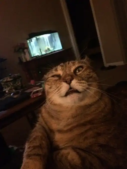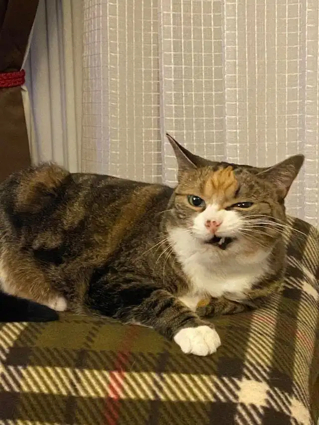 Выражение морды, которое появляется у моей кошки, когда ей надо чихнуть