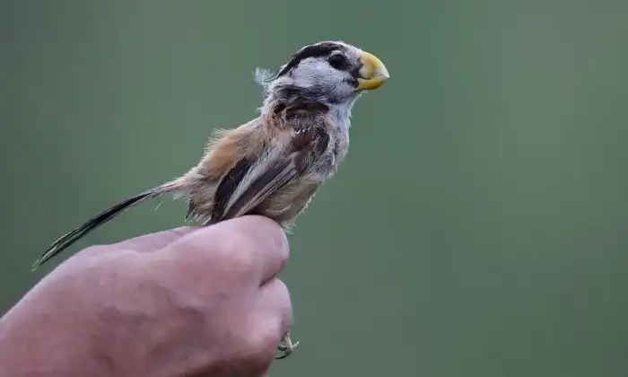 Как супер-герой сутора не выглядит. Птиц похож на воробья, к которому приделали гигантский клюв. Всё потому, что относится пернатый к семейству толстоклювых синиц. В англоязычной среде за впечатляющий шнобель её даже прозвали камышовым попугайчиком. Но скромные размеры — не главное. Главное — это мастерство. И его у суторы более чем предостаточно!