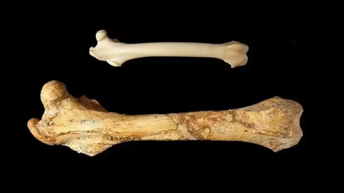 Бедренные кости нуралагуса и европейского кролика. С такой бандурой в ноге особо не побегаешь!