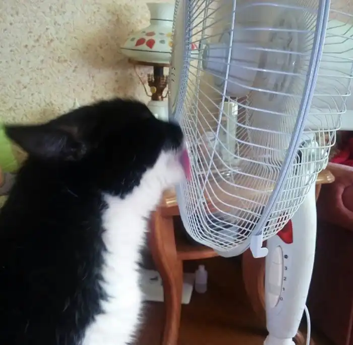 «Любимое развлечение моего кота в сезон включённых вентиляторов»