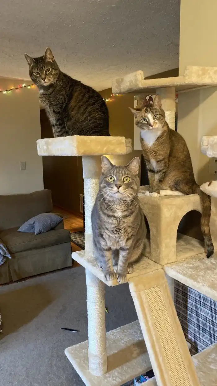 Этому щенку нравилось бежать на меня в полную силу.Джаспер, Сэди и Локи. Это навсегда останется лучшим совместным фото моих котов
