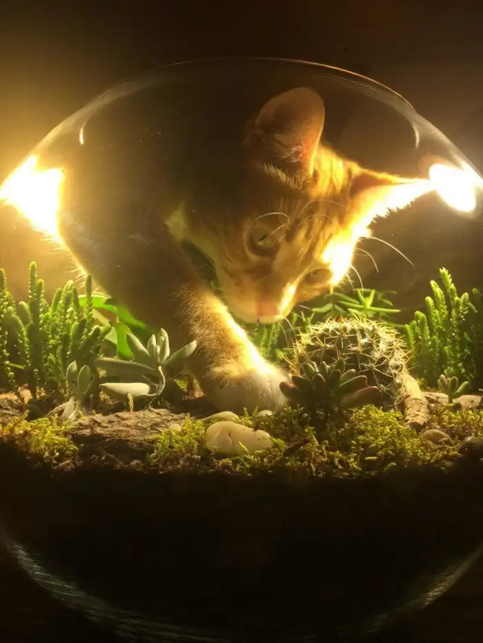 Моя кошка изучала мои суккуленты, а я сделала лучший снимок в своей жизни
