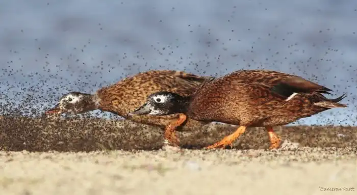 Зато по приезде на остров вы заметите чирков сразу же. Большую часть времени птицы тусуются на пляже. Здесь они занимаются добычей своего основного провианта — береговых мух. Во влажном песочке копошатся целые облака мелких насекомых, грех не воспользоваться таким источником белка.