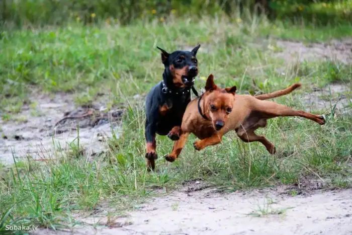 Удивительно, но такая козявка справлялась с обязанностями охранника более чем успешно. А всё потому, что концентрация бесстрашия в пинчерах зашкаливает. В случае опасности микропёс не убегает, бросая хозяина и его имущество на произвол судьбы. Он бросается на обидчика в атаку!