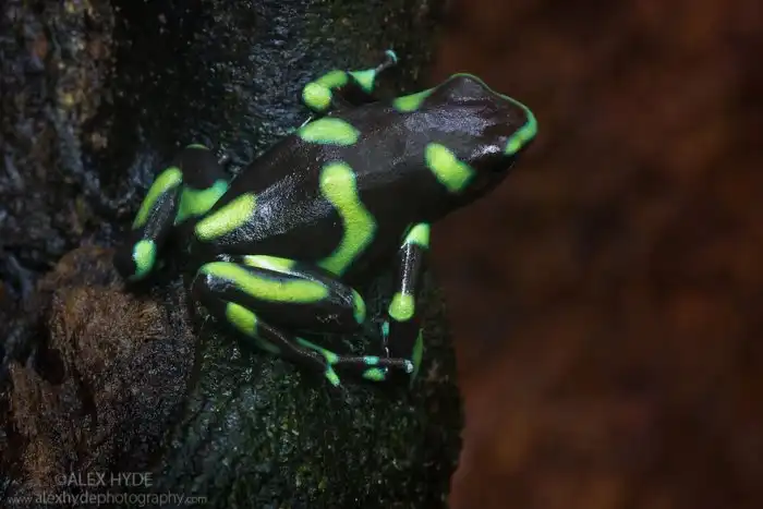 Среди крон их разглядеть непросто. Во-первых, потому что древолазы — это мелочь пузатая в 2-4 см в длину, причем самки в этом плане несколько габаритнее. А во-вторых, от неприятельских глаз древолазов скрывает классический «камуфляж» — светлые кляксы, расплывающиеся на тёмном фоне. Расцветка маскировки от лягухи к лягухе весьма сильно отличается. В качестве темного фона могут выступать черный, коричневый и бронзово-зеленый оттенки. А для светлых пятен применяется целая палитра от мятно-зеленого до синего, кофейного и даже белого.