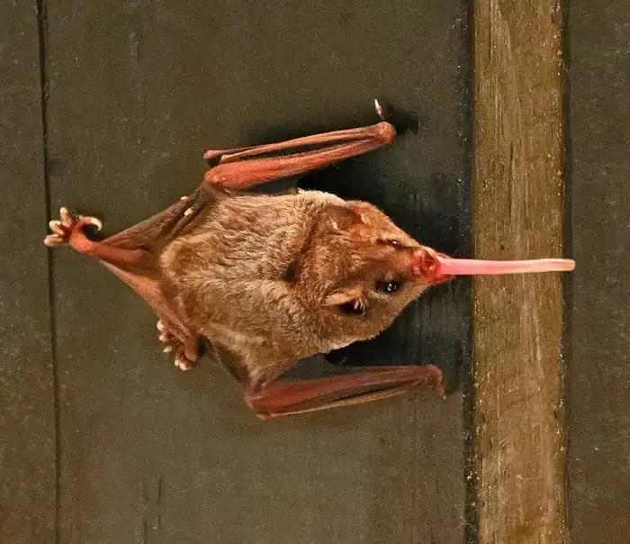 Вампир он только по названию — вид крови пушистого летуна не пугает, но и не привлекает: мышка является нективоядным, то бишь питается чистым сахаром в виде нектара. С этим же связаны две его физиологические особенности.