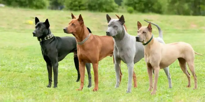Это породу также называют голубым тайским риджбеком. Но окрас в породе может быть не только пепельно-серым. Предусмотрено 4 вариации.