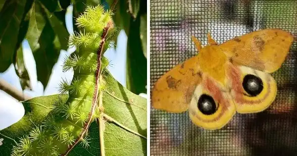 Гусеница Сатурнии ио многих привлекает своими ярко-зелёными помпончиками, расположенных по всему её телу, которые так и хочется пощупать. Но вид этой гусеницы обманчив. Её яд очень опасен для любого живого организма. Так что, одно прикосновение — и вы обречены.