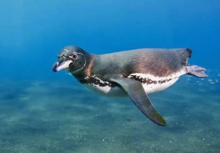 В процессе эволюции галапагосские пингвинчики уменьшились до размера курицы — всего 1.5-2 килограмма веса и 50 сантиметров роста. Так поверхность тела поглощает меньше солнечного света, а сами пернатые становятся проворнее на суше и в воде. Прослойка подкожного жира у пташек не такая толстая, как у других видов, дабы не задерживать избыточное тепло внутри тела.