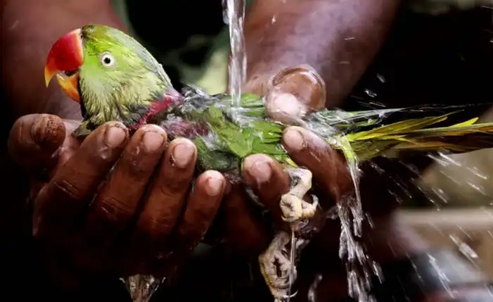 В случае с птицами перегрев происходит, когда температура окружающей среды приближается к температуре их тела — 40+ градусам. Помочь им можно лишь одним способом: дать больше воды. Только вот способ применения может быть разным.
