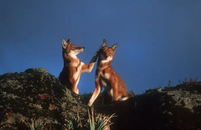 Эфиопские волки чертовски близки к вымиранию. Их осталось несколько сотен, но и они раскиданы кучками по разным горным хребтам без возможности пересекаться. Развитие овцеводства в предгорьях выдавило животин на более высокие вершины, а с их привередливостью выживать там ещё сложнее.