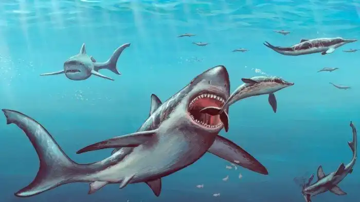 Большая белая акула – самая крупная в мире хищная рыба. Её длина может превышать 6 метров, а масса достигать почти 3-ёх тонн. Крутые характеристики, не правда ли?! Однако в далёкие времена, когда предки людей ещё мало чем отличались от обезьян, в Мировом океане обитал мoнcтр, на фоне которого даже белая акула показалась бы малюткой.