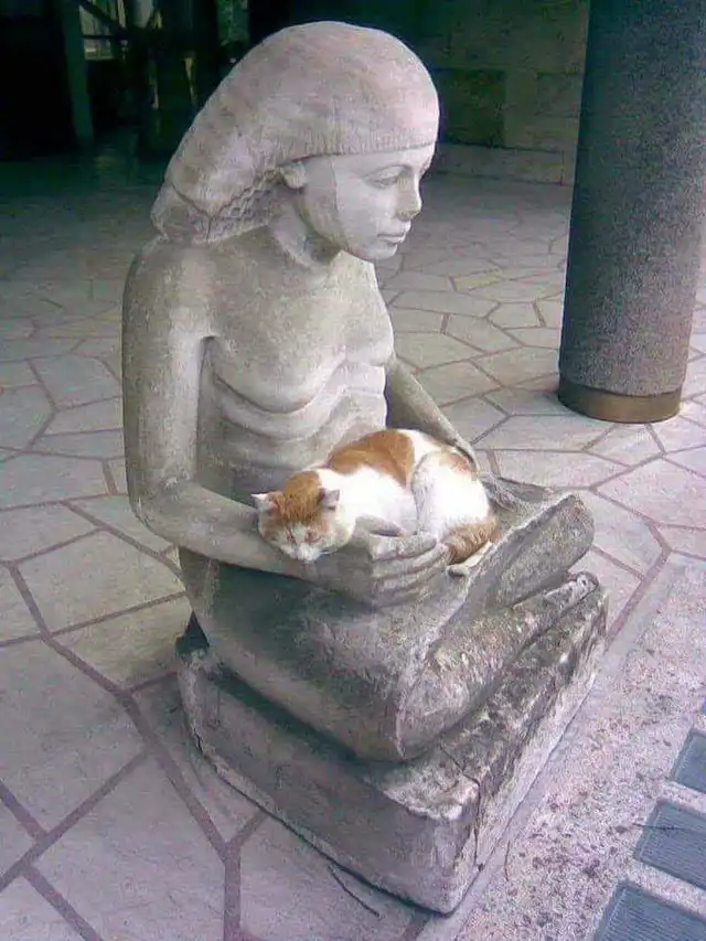 Любовь любовная произошла между этим котом и статуей представителя кошачьих