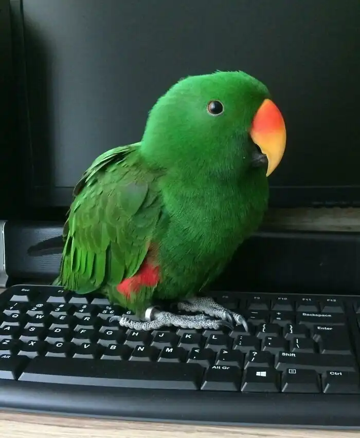 "Мой попугай наклонился вот так, и что-то шептал минут 5. Только потому, что я не разрешил ему грызть мой чехол"