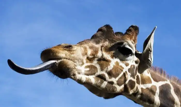 Средняя длина языка жирафа - 50 см. С его помощью они даже могут хватать предметы или еду