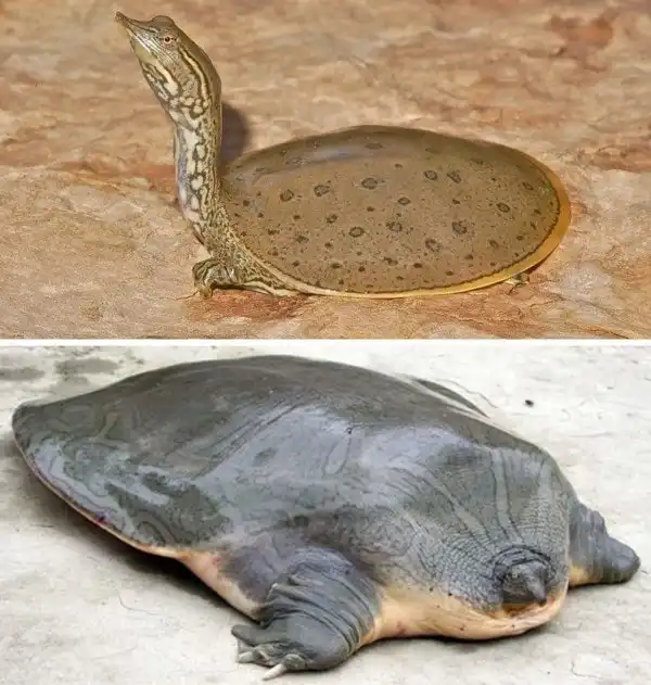 Разновидности этих черепах характеризуются отсутствием привычного панциря. Их спина покрыта ровной кожей или редкими роговыми шипиками.