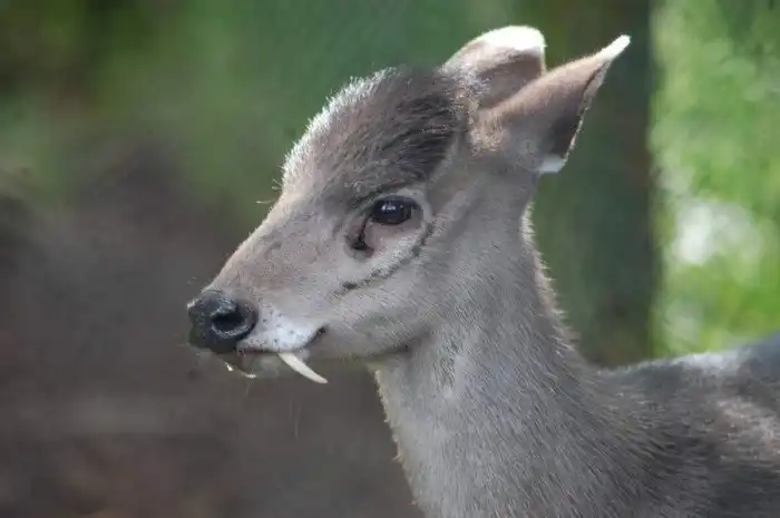Олень с клыками? Хохлатый олень. Мало того, что рога, точнее маленькие рожки, у него находятся под хохолком, так и с клыками он походит на оскаленную крысу.
