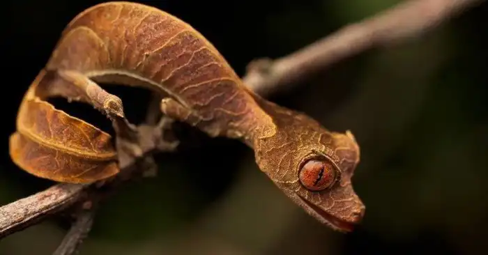 Фантастический листохвостый геккон своей маскировкой имитирует желтый осенний лист.