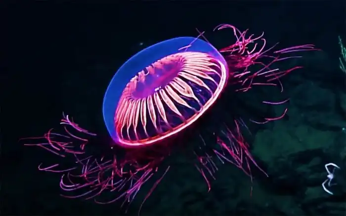 А это – медуза-фейерверк. Обитает на глубине более 1000 метров.