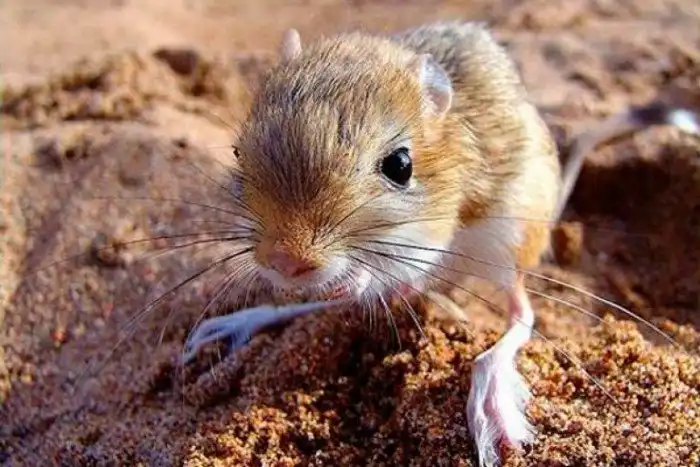 Смешной карликовый тушканчик Козлова. У него большая голова и длиннющие лапы.