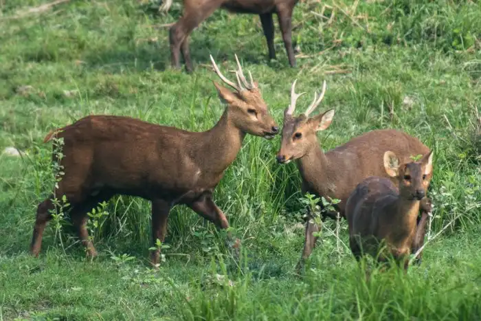Иногда, правда, собираются родственные группы и даже стада, но особенной сплоченностью толпа оленей всё равно не отличается: если на горизонте замаячил тигр или леопард, олени разлетаются во все стороны, как бильярдные шары у опытного игрока. Да, звучит не сильно благородно, зато на практике крайне действенно: ведь особых скоростных талантов у оленя нет, а незаметно заныкаться в зарослях гораздо проще в гордом одиночестве.