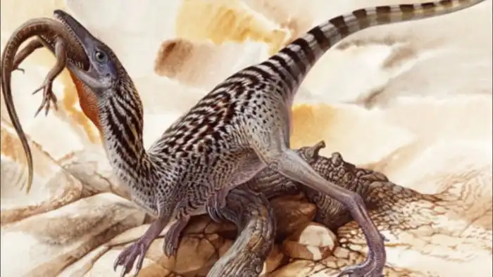 Ладно, мы чуток преуменьшили размеры нашего героя. Но, по крайней мере, не так сильно, как это сделали в «Парке Юрского периода». Там нашего героя и вовсе показали размером чуть больше крысы. На самом деле, динозавр был размером с полноценную индейку — его длина могла доходить до 1.5 метра, высота в бедре — до 30 см, а вес около 3-х кг. Не впечатлило? Ну да, пока удивляться нечему.
