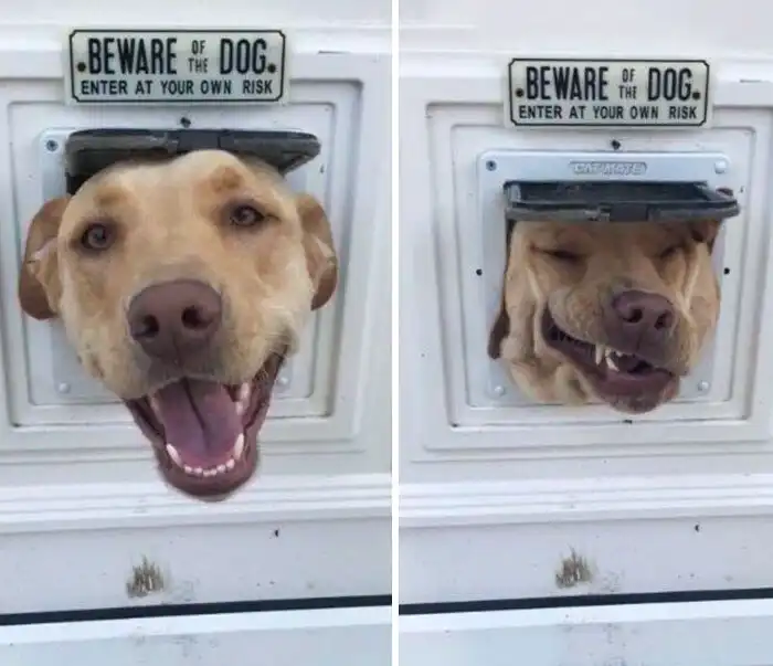 "А наш кот застрял между сеткой и стеклянной дверью"