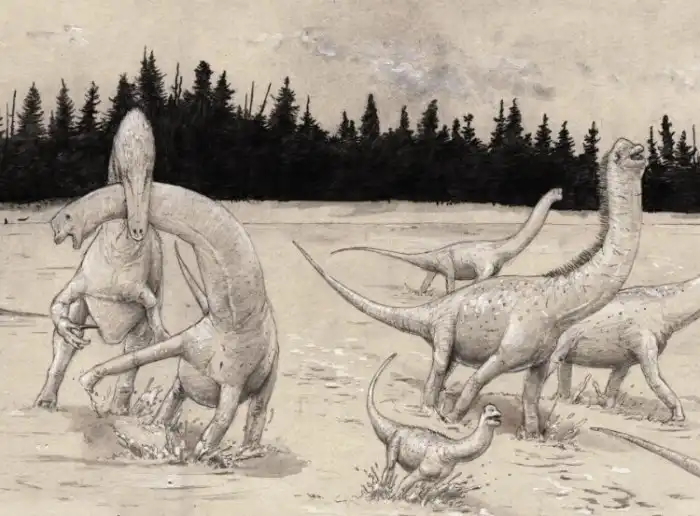 Такие хищные динозавры охотились на больших зауропод. Так что поймать один из самых маленьких видов им было так же легко, как в магазин за хлебушком сгонять.