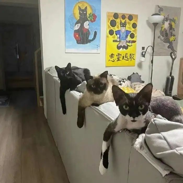 Хозяин говорит, что его кошки такие разные, что даже их позы для отдыха отличаются между собой