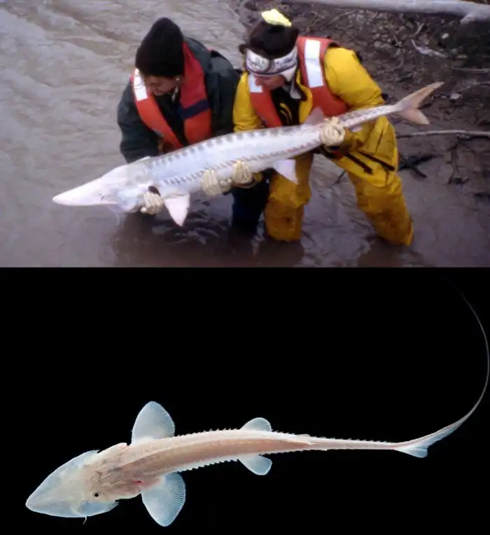 Сверху — американский белый лопатонос. Снизу — наш герой, амударьинский лжелопатонос.